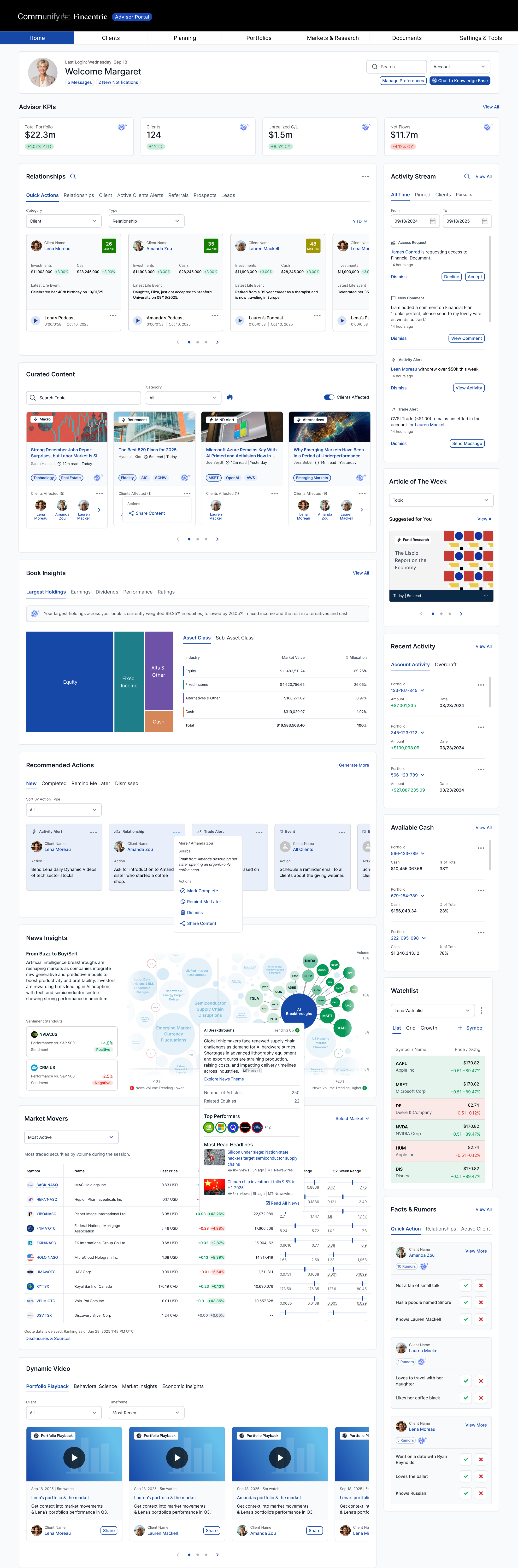 Old curated content had no connection to clients and their holdings. Now the adviosr can see